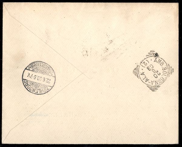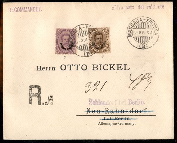 Raccomandata affrancata con 60 cent + 40 cent Umberto (7 + 9) da Massaua a Zehlendort (Berlino) del 8.6.1903