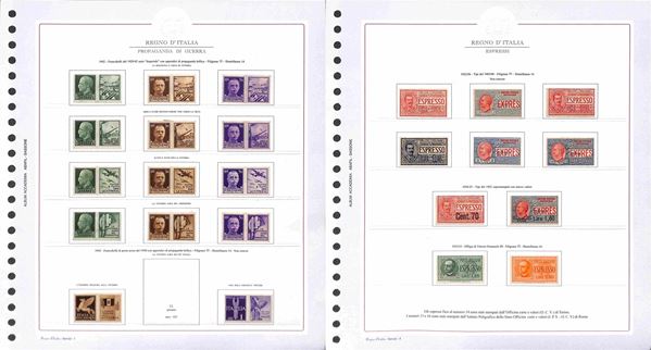 REGNO D'ITALIA - 1861/1945 - Collezione molto avanzata di valori nuovi del periodo in album Abafil con serie per lo pił complete - posta ordinaria pił servizi pił Luogotenenza - insieme interessante con diversi valori di pregio - alcuni certificati - altissimo valore di catalogo (135.000+) - merita attento esame
