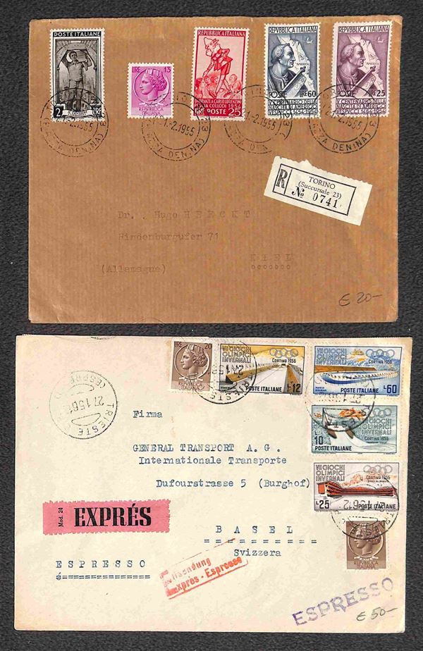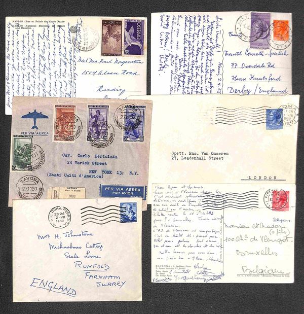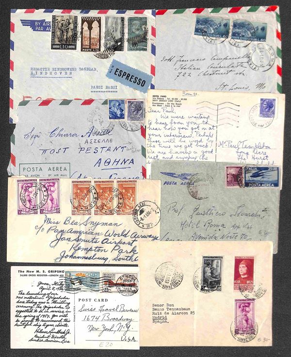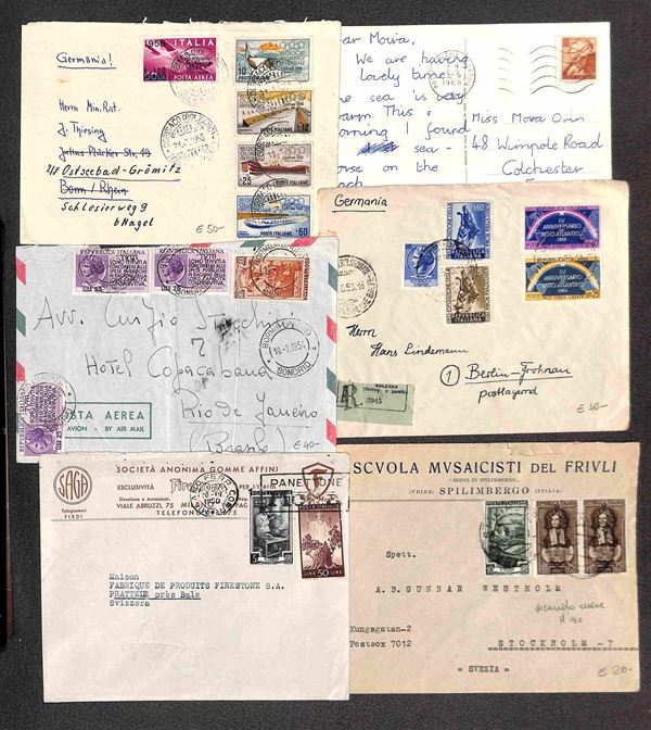 REPUBBLICA - 1947/68 Buon insieme di ventidue lettere e cartoline con destinazioni estere, molte viaggiate per via aerea, affrancature interessanti e qualche valore isolato, una lettera non conteggiata per difetti, da esaminare con attenzione
