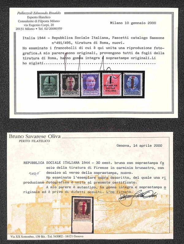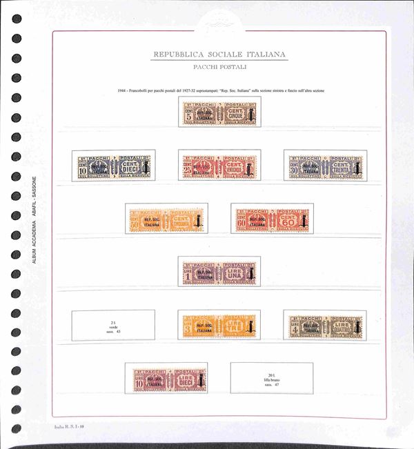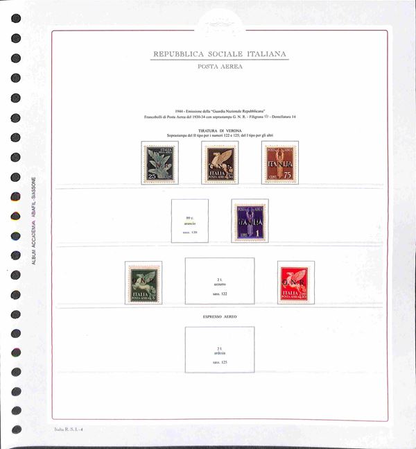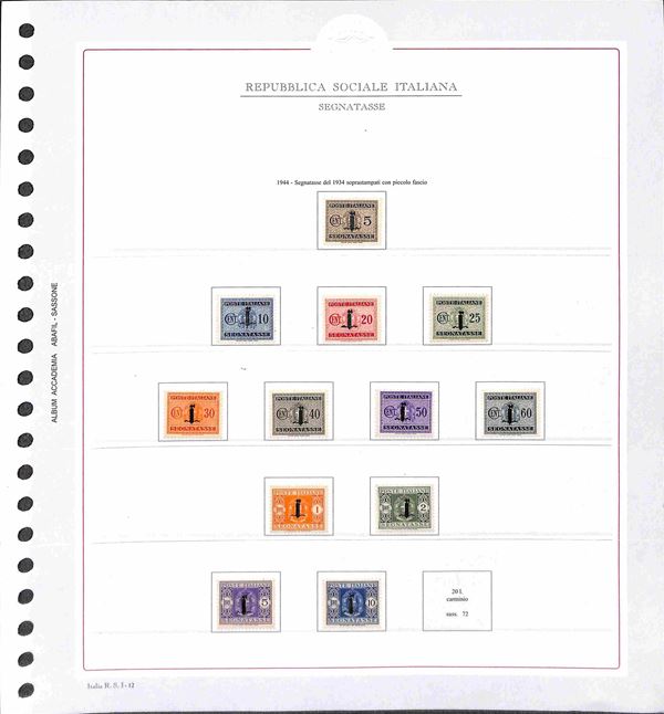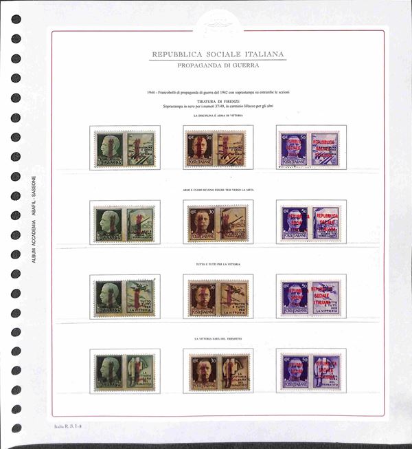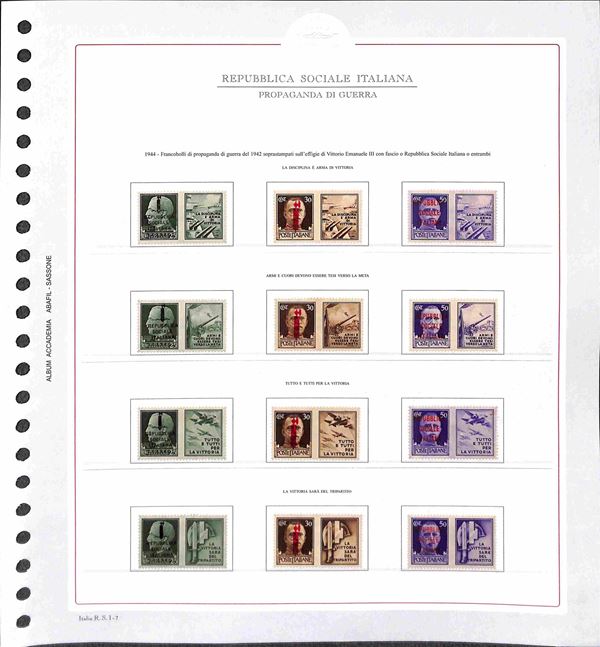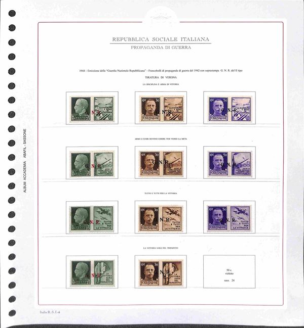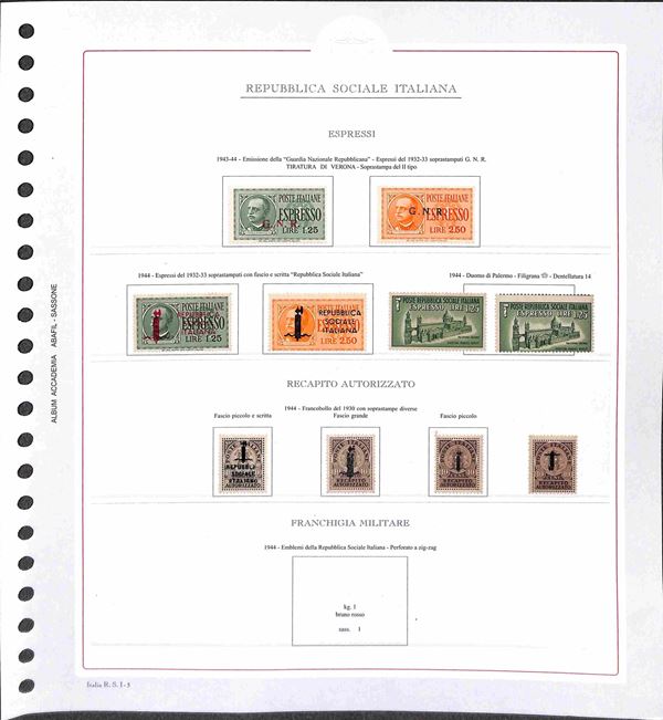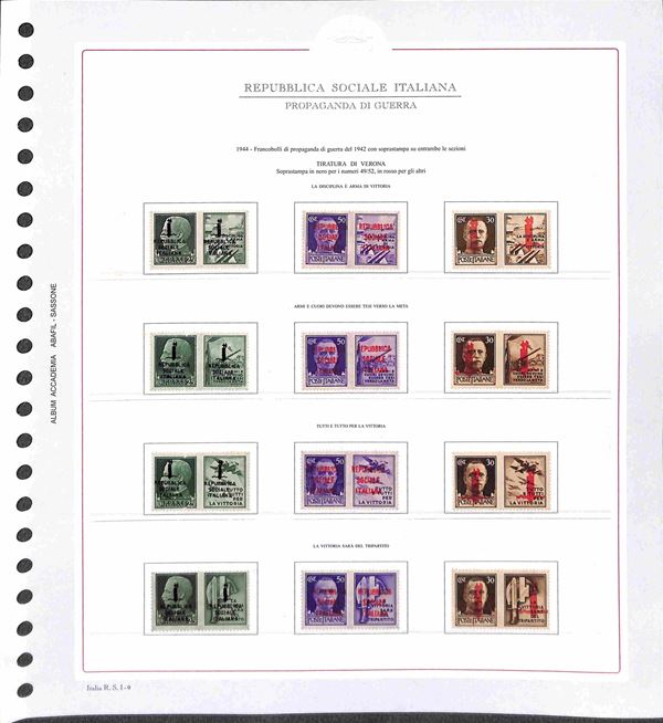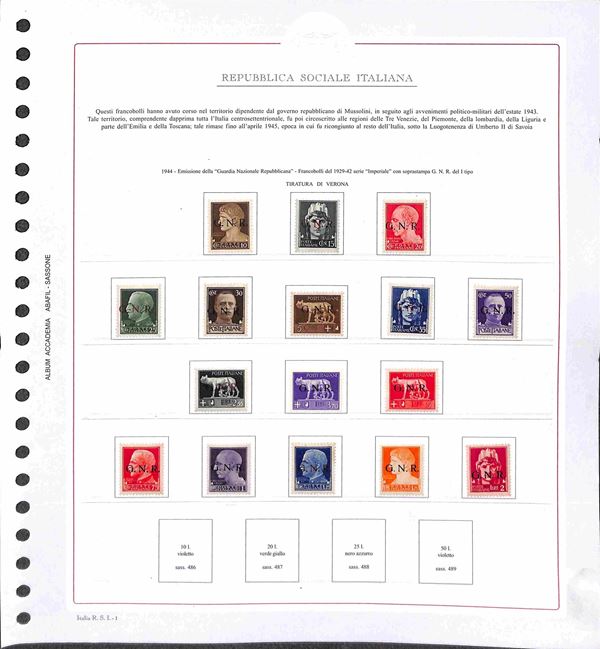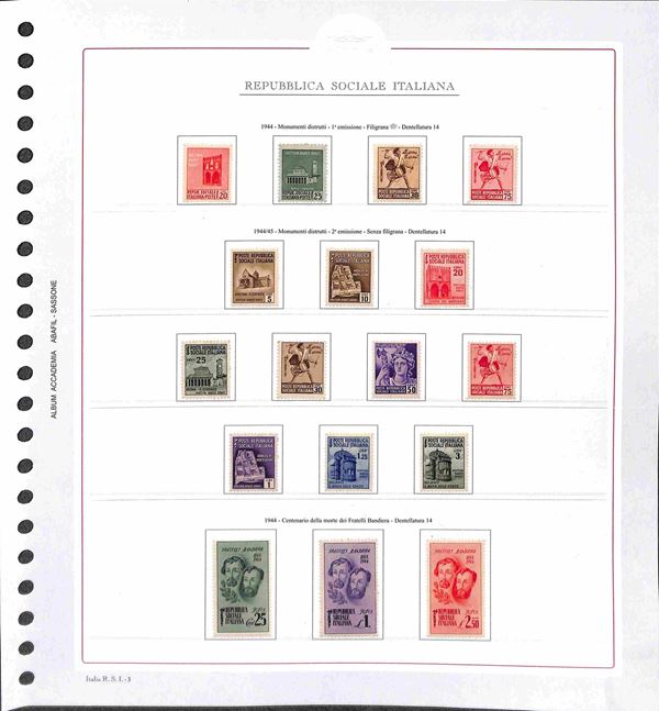 REPUBBLICA SOCIALE - 1943/1945 - Collezione del periodo montata su fogli Abafil - valori nuovi in serie per lo pił complete con ottime presenze - alcuni certificati - alto valore di catalogo (oltre 13.000) - merita esame