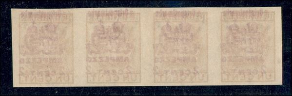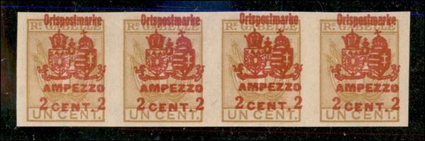 Striscia orizzontale di quattro del 2 su 1 cent Ampezzo (2ab) con soprastampa spostata in alto - di pregio