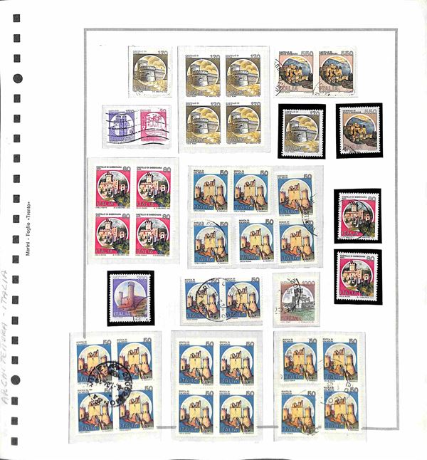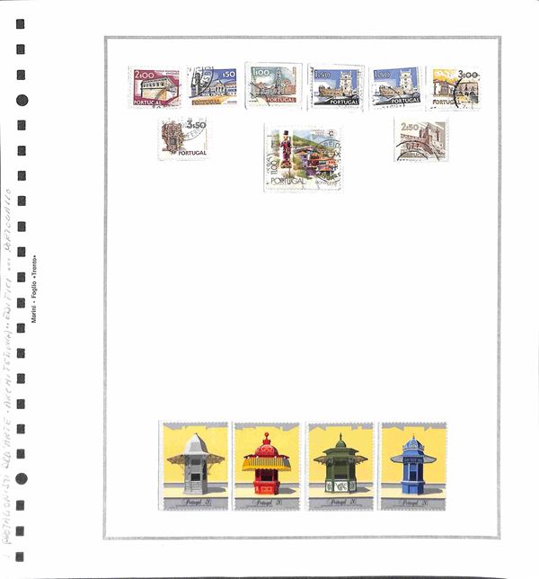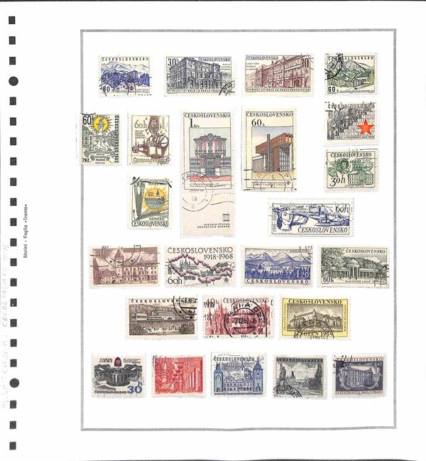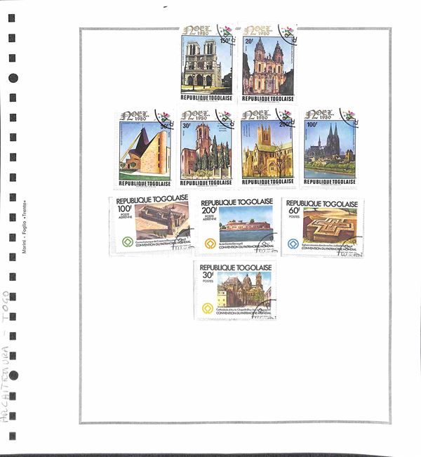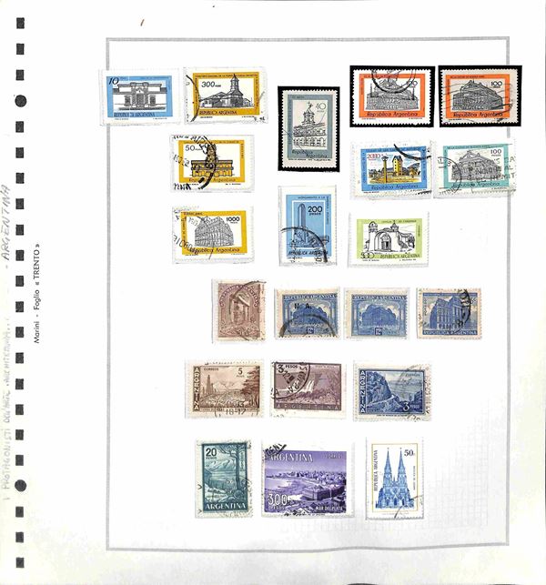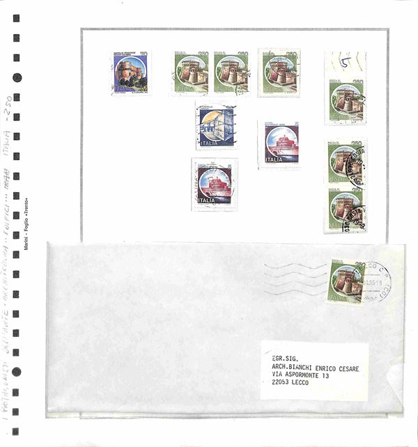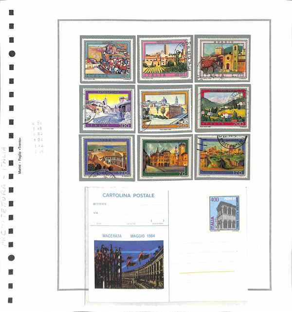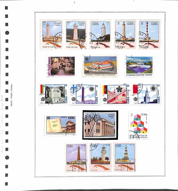 TEMATICA - ARCHITETTURA - 1920/1985 circa - Collezione di valori serie complete ed alcuni oggetti postali del periodo di diversi paesi mondiali montati in tre cartelle con fogli artigianali - nuovi e usati - bell'insieme