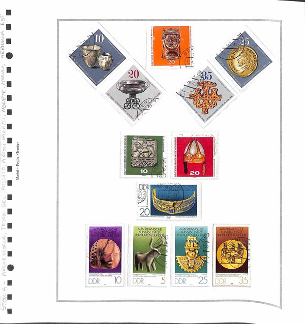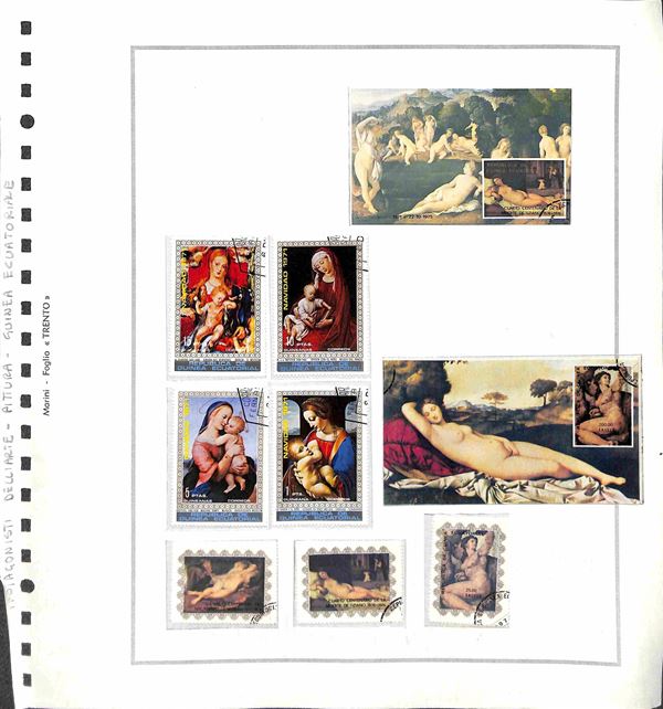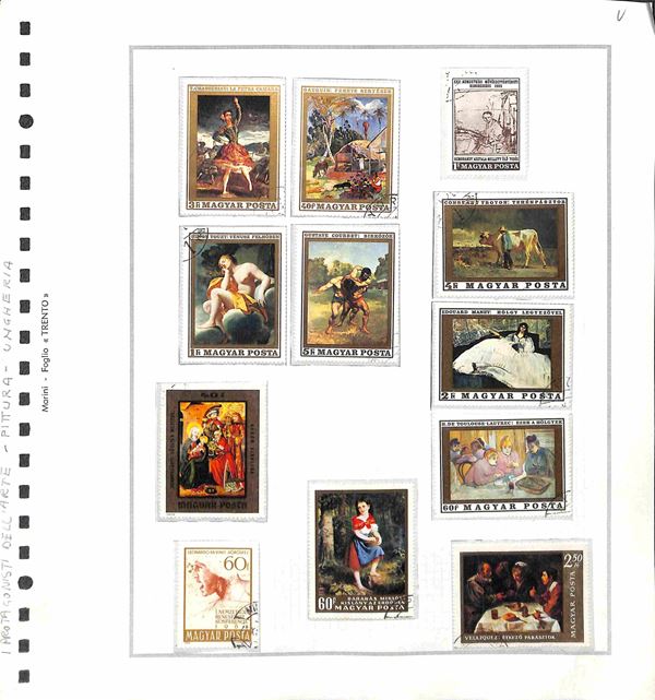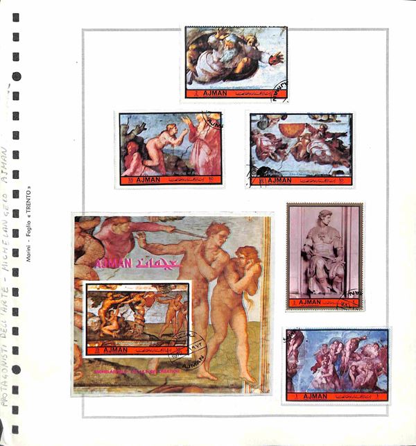 TEMATICA - ARTE - 1940/1985 CIRCA - Collezione di valori serie complete ed alcuni oggetti postali del periodo di diversi paesi mondiali montati in due album con fogli artigianali + 1 folder - nuovi e usati - bell'insieme