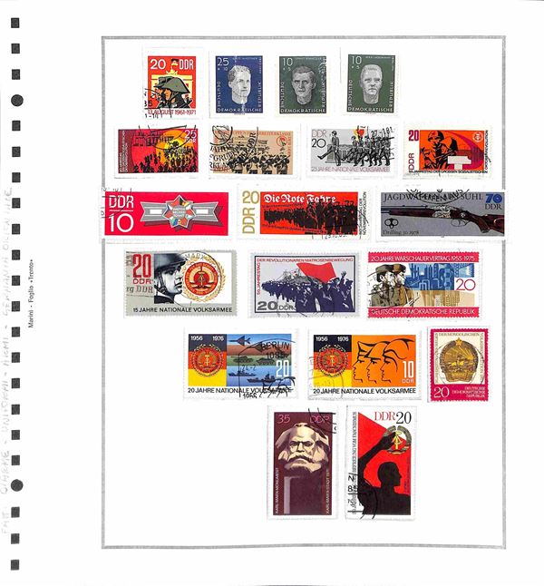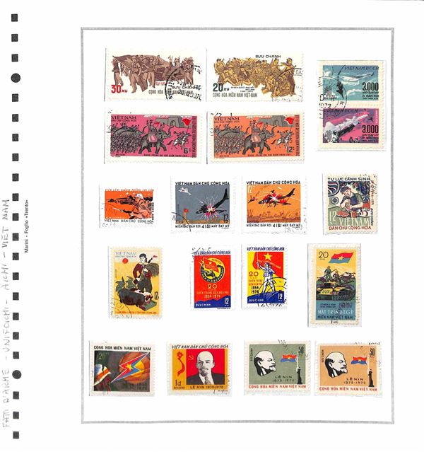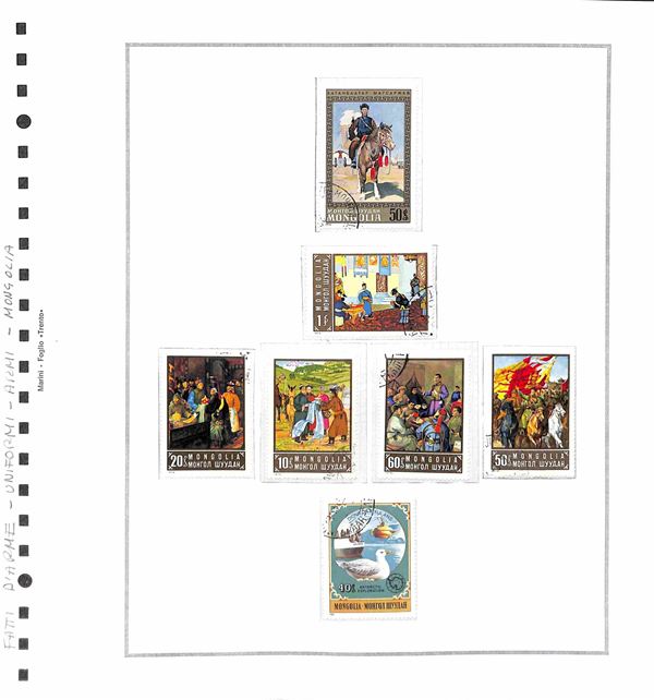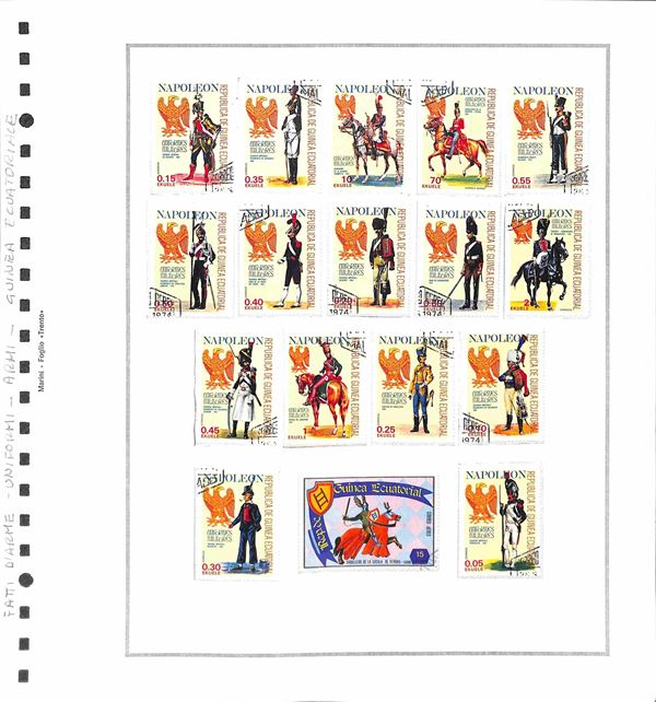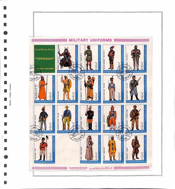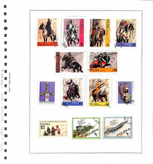 TEMATICA - EVENTI STORICI GUERRE ARMI UNIFORMI - 1920/1980 circa - Collezione di valori serie complete ed alcuni oggetti postali del periodo di diversi paesi mondiali montati in due cartelle con fogli artigianali - nuovi e usati - bell'insieme