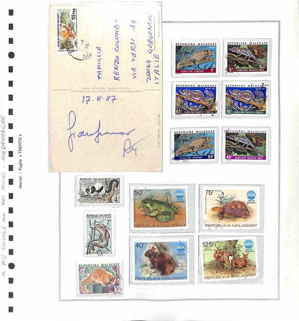TEMATICA - FAUNA - 1930/1985 circa - Collezione di valori serie complete ed alcuni oggetti postali del periodo di diversi paesi mondiali montati in due cartelle con fogli artigianali - nuovi e usati - ottimo insieme