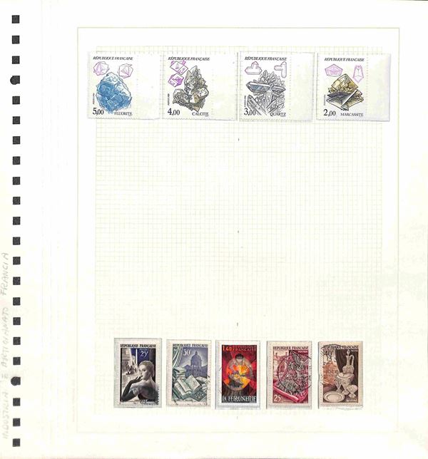 TEMATICA - INDUSTRIA E ARTIGIANATO - 1940/1985 - Piccolo insieme di valori serie complete ed alcuni oggetti postali del periodo di diversi paesi montati in 35 fogli artigianali - principalmente usati