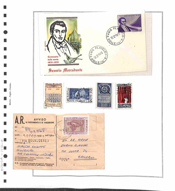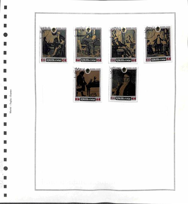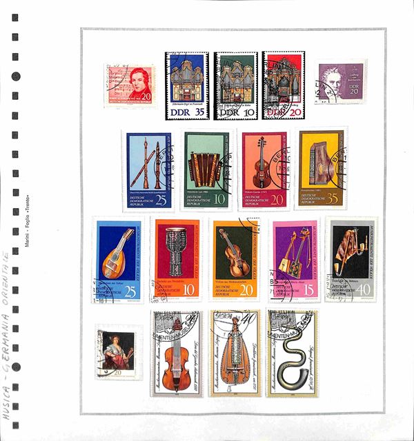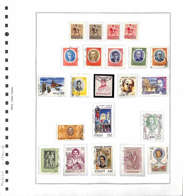TEMATICA - MUSICA - 1940/1981 - Piccolo insieme di valori serie complete ed alcuni oggetti postali del periodo di diversi paesi montati in 32 fogli artigianali - principalmente usati