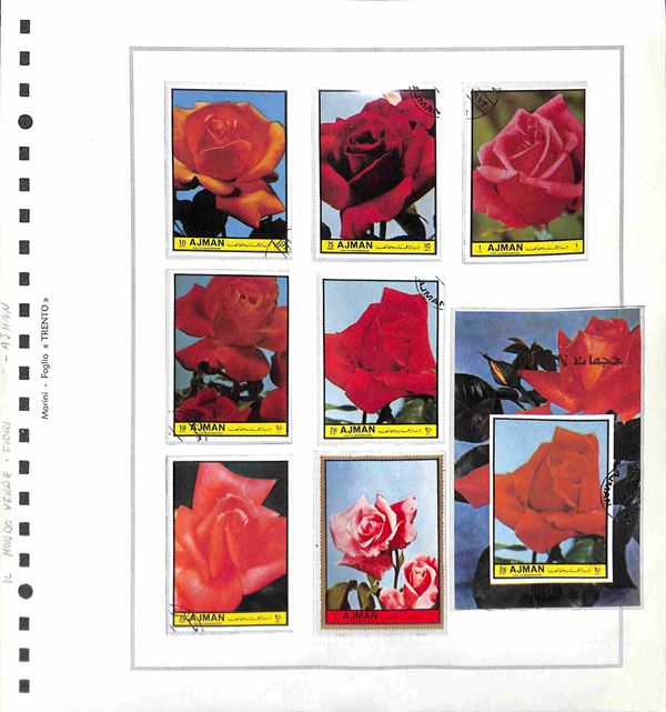 TEMATICA - NATURA - 1900/1985 circa - Collezione di valori serie complete ed alcuni oggetti postali del periodo di diversi paesi mondiali montati in album + due cartelle con fogli artigianali - sotttotemi presenti agricoltura caccia e pesca frutti fiori funghi - nuovi e usati - ottimo insieme