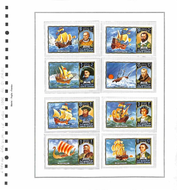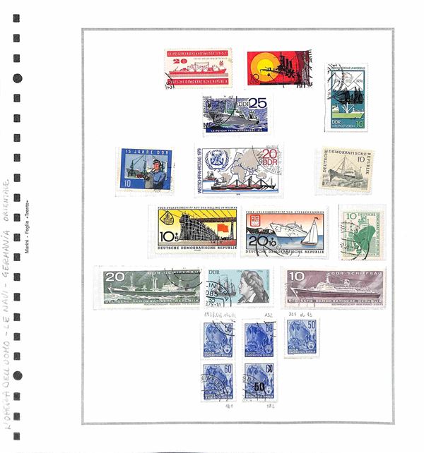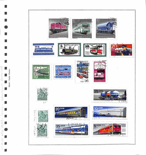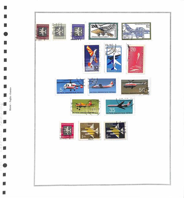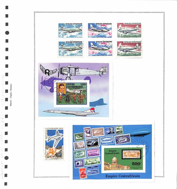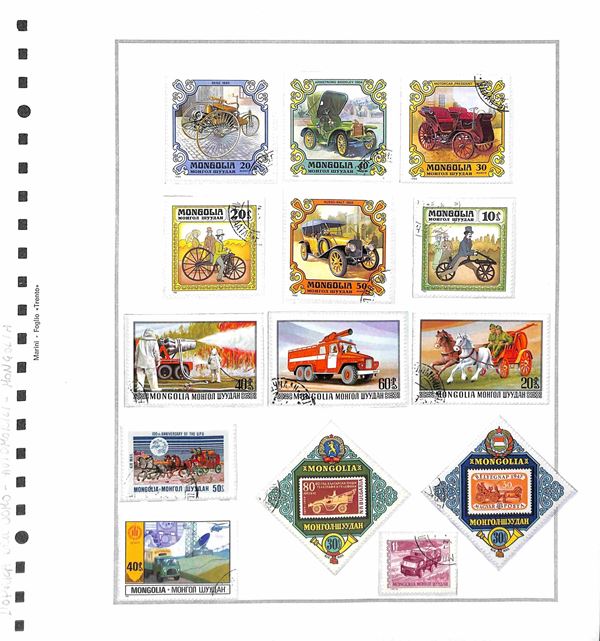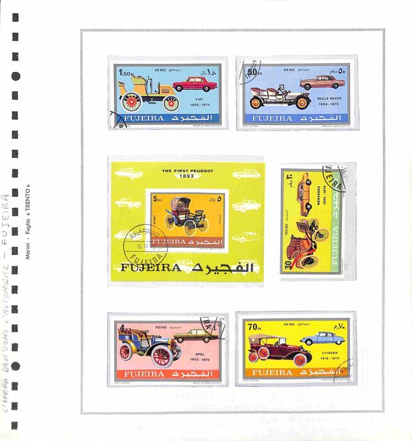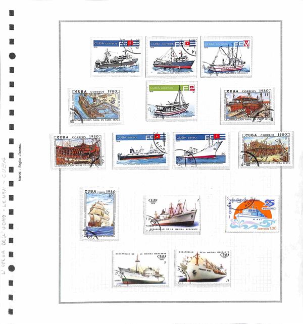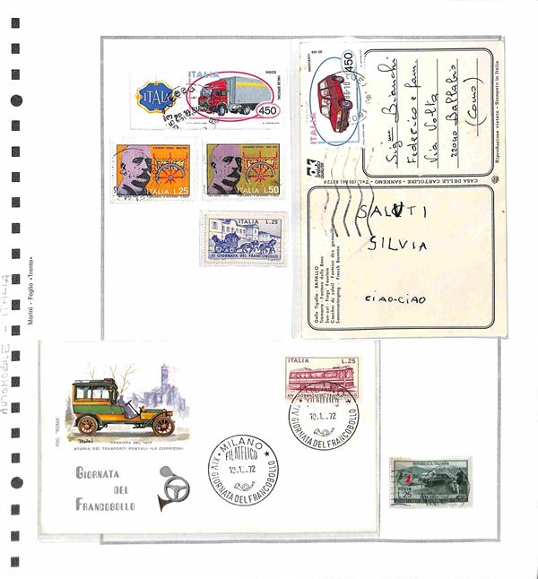 TEMATICA - TRASPORTI - 1940/1985 circa - Collezione di valori serie complete ed alcuni oggetti postali del periodo di diversi paesi mondiali montati in album con fogli artigianali + cartella con altri fogli artigianali - tematiche presenti auto treni navi ed aerei - nuovi e usati - ottimo insieme