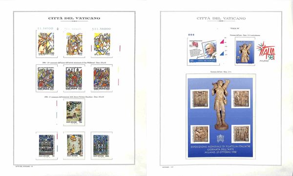 VATICANO - 1929/2006 - Collezione praticamente completa con pochissime mancanze di valori nuovi in 2 album Marini + 3 classificatori - posta ordinaria e servizi - molto bella - merita esame