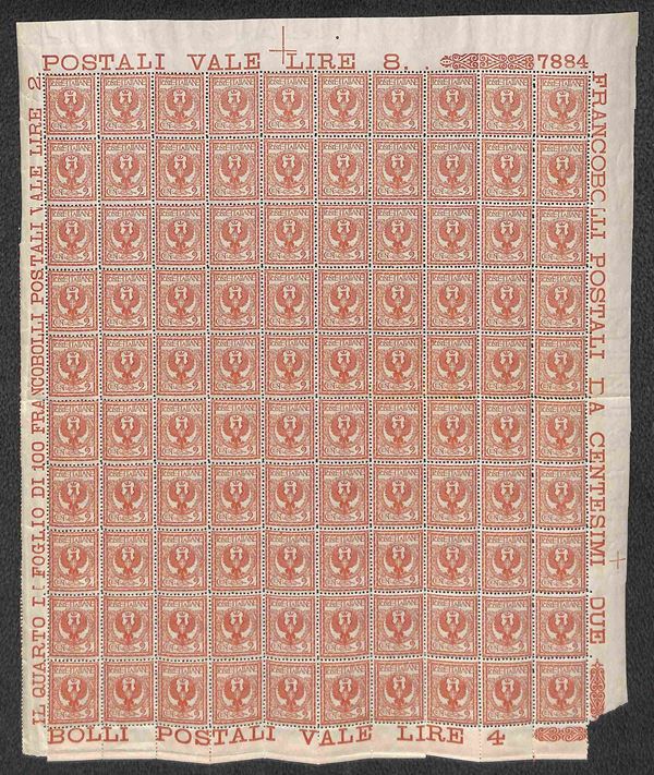 1901 - I due valori 1 e 2 cent Floreale (68/69) in fogli di 100 esemplari - gomma integra