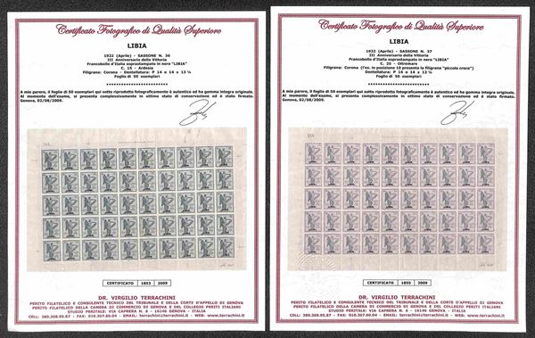 1922 - Splendida serie completa dell'emissione Vittoria (34/37) in fogli di 50 esemplari - gomma integra e bordi completi - bellissimo insieme - Fabris