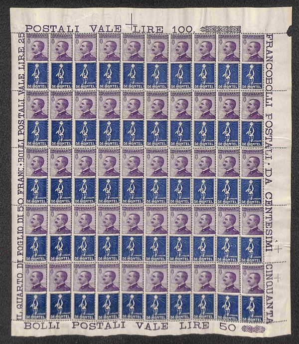1924 - Bellissimo foglio di 50 esemplari del 50 cent De Montel (12) - gomma integra e bordi completi