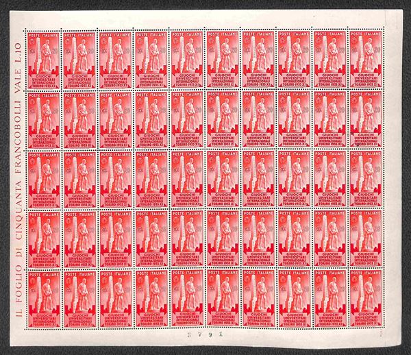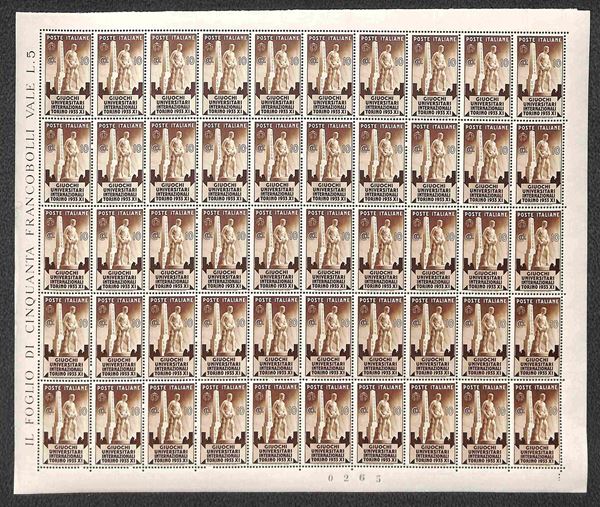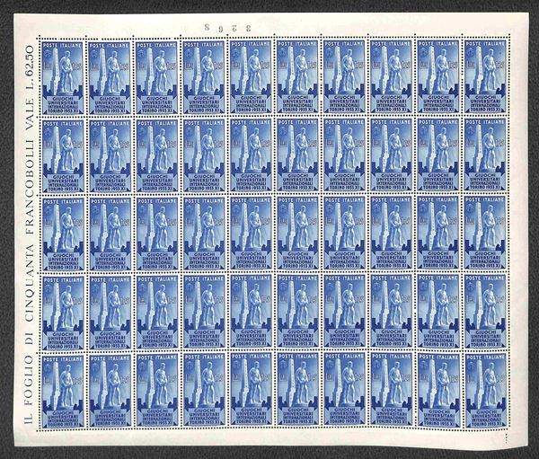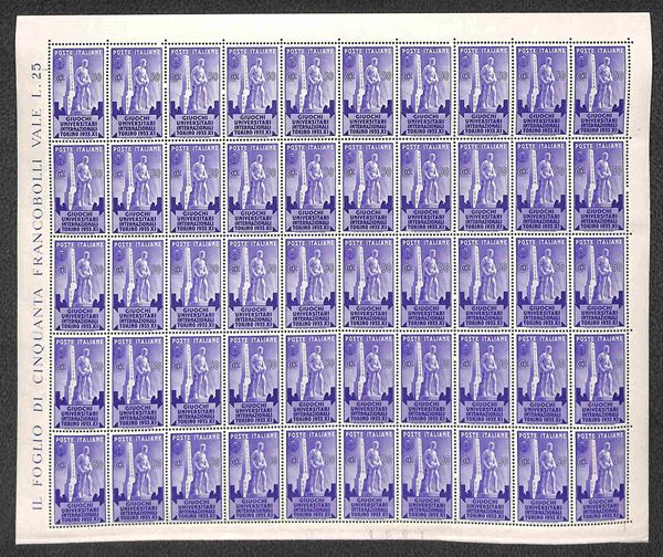 1933 - Serie Giochi Universitari (341/344) in fogli di 50 esemplari - gomma integra e bordi completi - molto belli