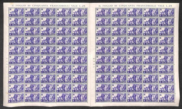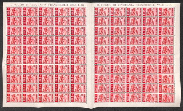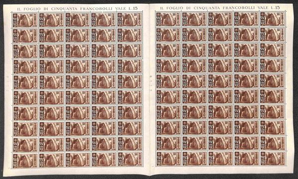 1935 - Splendida serie completa in fogli doppi di 50 esemplari (100) dei Littorali della Cultura e dell'Arte (377/379) - gomma integra e margini completi - molto belli
