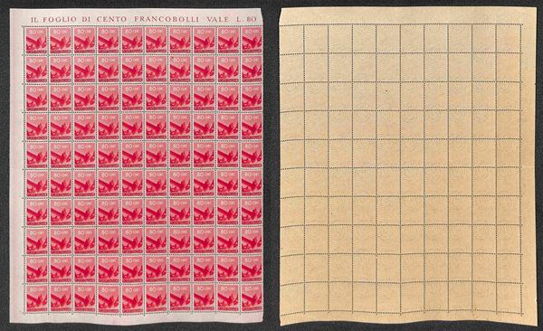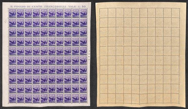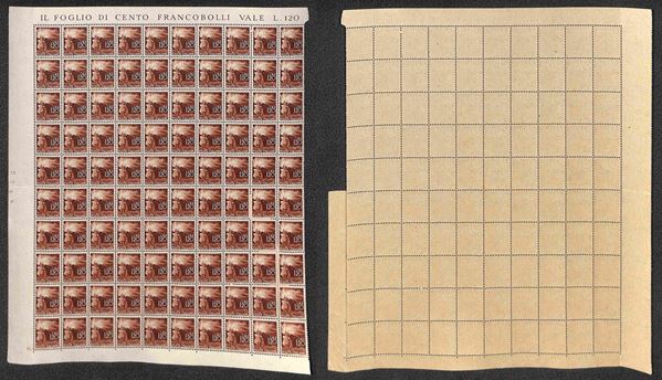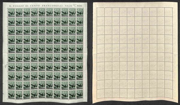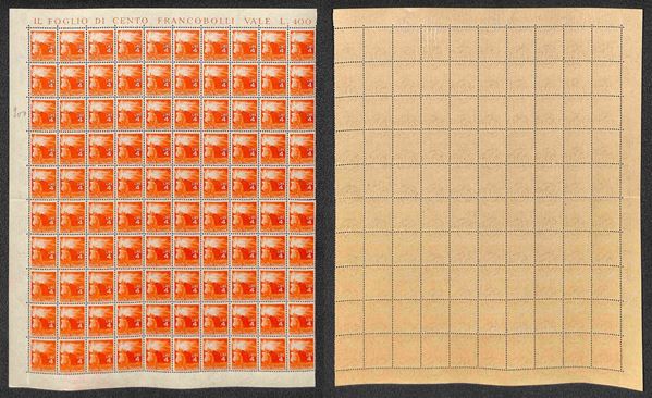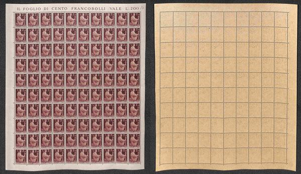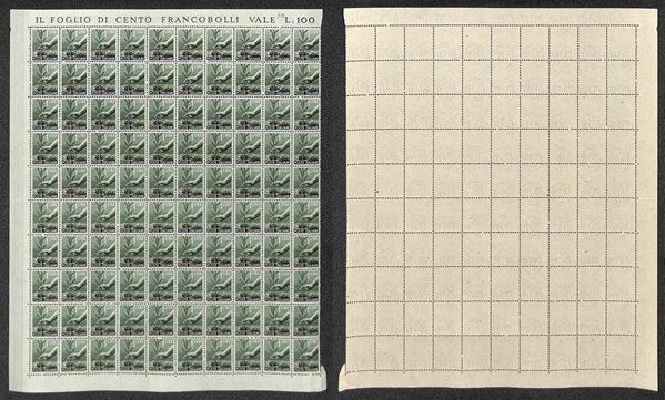 1945/1948 - Valori dell'emissione Democratica (543 + 545/555 + 557) in fogli di 100 esemplari - gomma integra