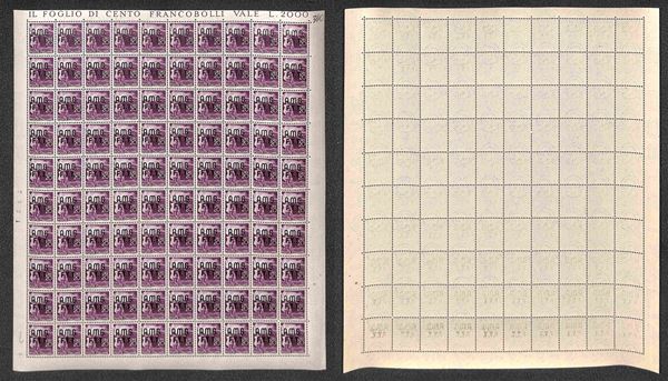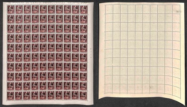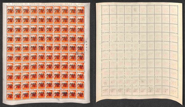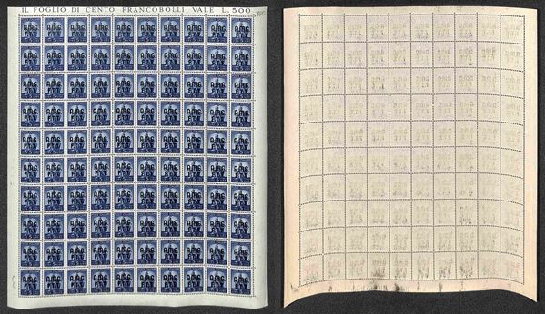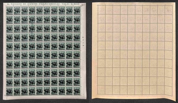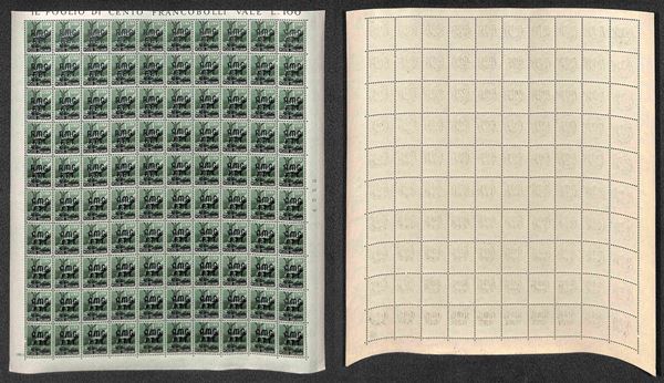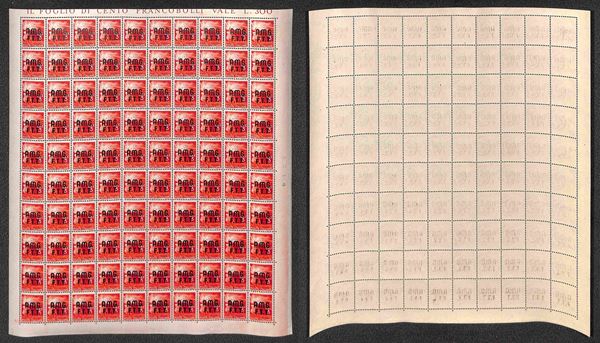 1947/1948 - Valori dell'emissione Democratica (1/10 + 12/14 + 16) in fogli di 100 esemplari - gomma integra