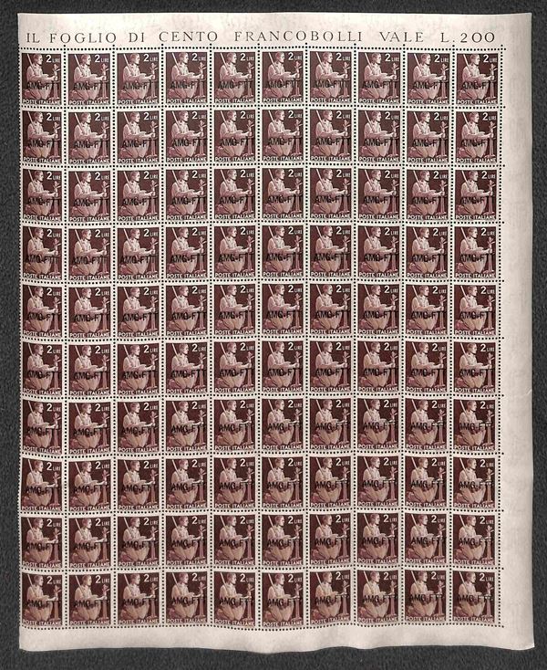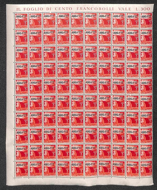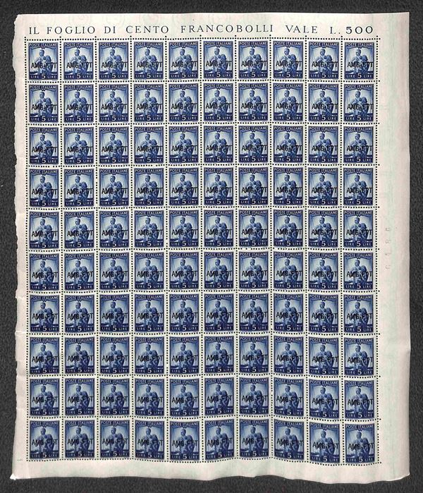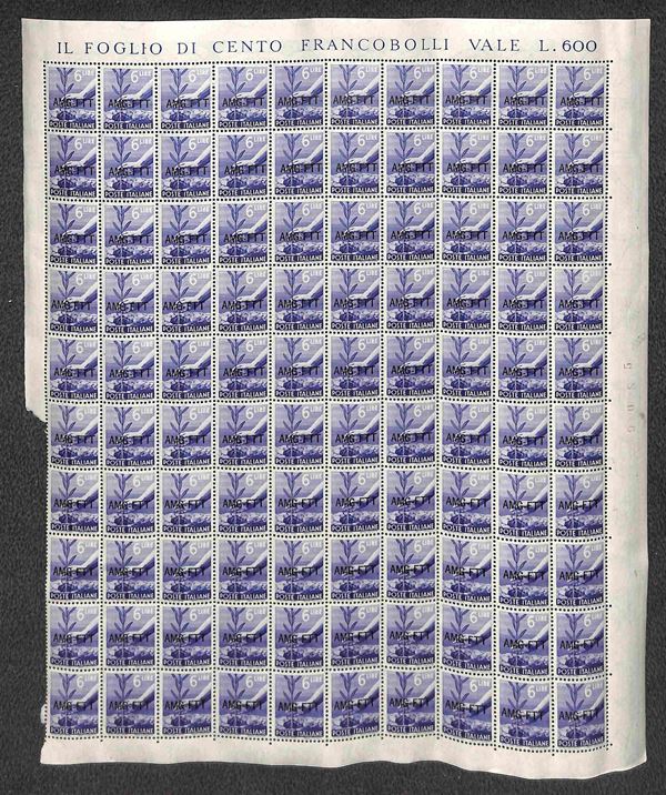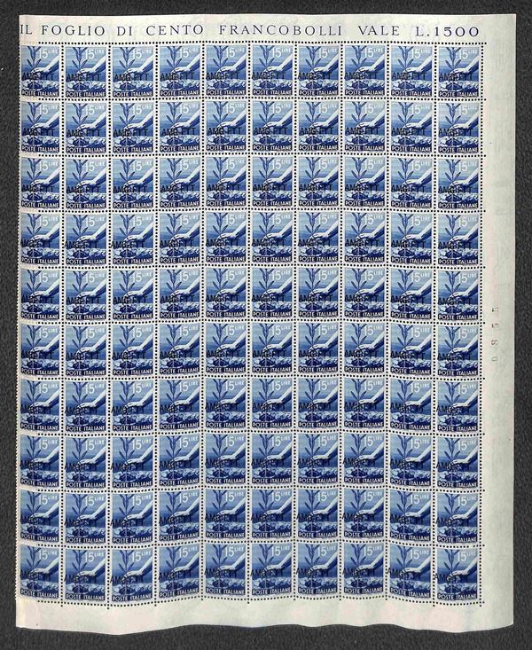 1949/1950 - Valori 1 lira 2 lire 3 lire 5 lire 6 lire e 15 lire Democratica (56/60 + 63) in fogli di 100 esemplari - gomma integra