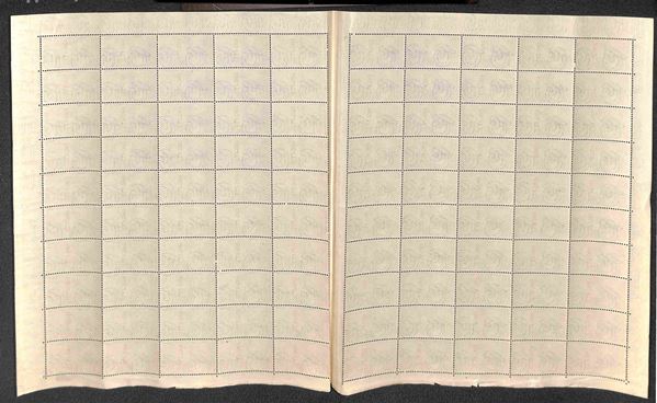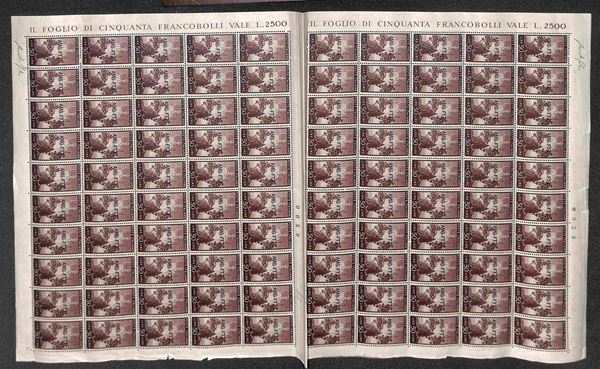 1950 - Bellissimo foglio doppio di 100 esemplari del 50 lire Democratica (66) - gomma integra e bordi completi - Fabris