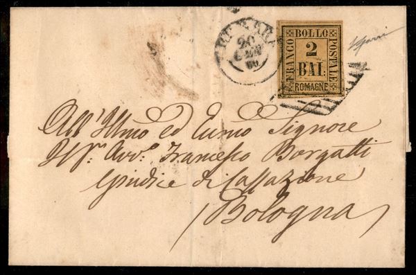 2 bai giallo arancio (3) isolato su involucro di lettera da Ferrara a Bologna del 20.1.60 - ottimi margini - L. Gazzi