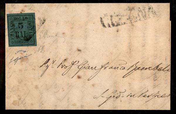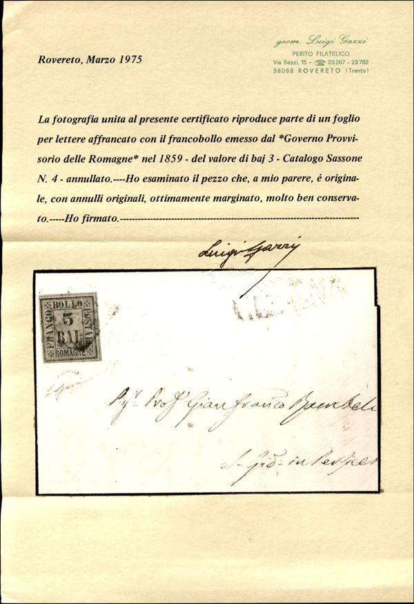 3 bai verde (4) isolato su letterina (rifilata) da Cesena (SD) a S. Giovanni in Persiceto del 29.12.59 - ottimi margini - A. Diena + E. Diena + cert. Gazzi