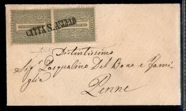Bella bustina affrancata con coppia del 1 cent (T14) da Cittą S. Angelo (SD) a Penne
