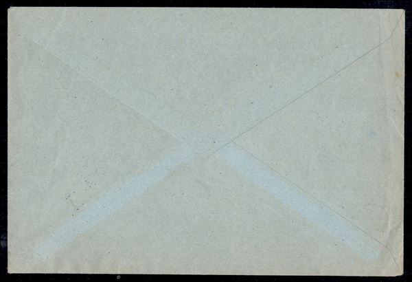 Busta affrancata con 10 cent Medaglie al Valore annullato Trieste 30.10.34 con a lato etichetta per gli esperimenti di posta razzo con relativi bolli celebrativi