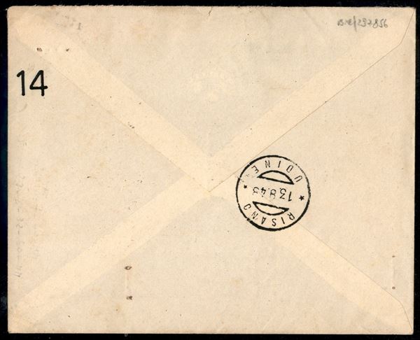 Busta non filatelica spedita il 11.8.48 (impostata il 10.8) affrancata con soprastampato da 12 lire pił 3 lire Posta Pneumatica Italia - tariffa per lettere pił sopratassa per la posta pneumatica da ufficio romano - viaggiata - raro documento