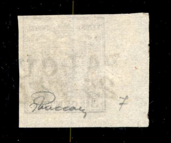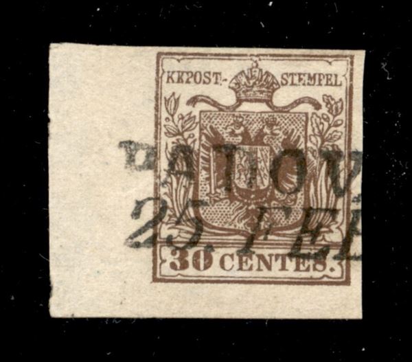 Cent. 30 bruno (7) I tipo usato con angolo di foglio, firma P.Vaccari