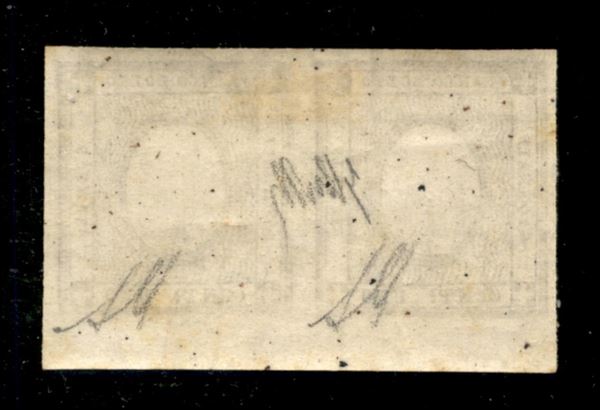 Coppia del c.1 grigio nero (19) con bordo di foglio inferiore e piena gomma, privo dell'impronta a secco e con tripla stampa ben distanziata