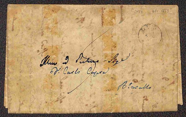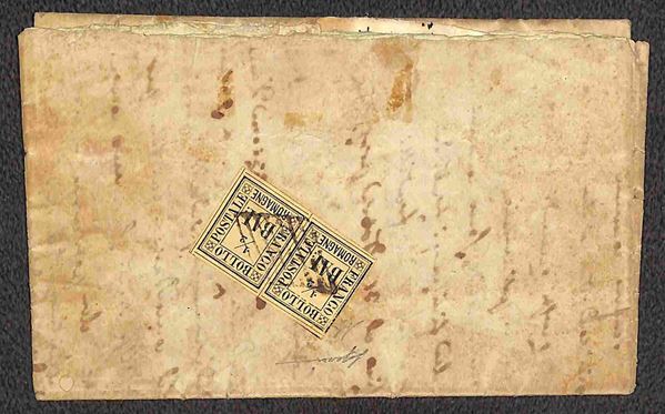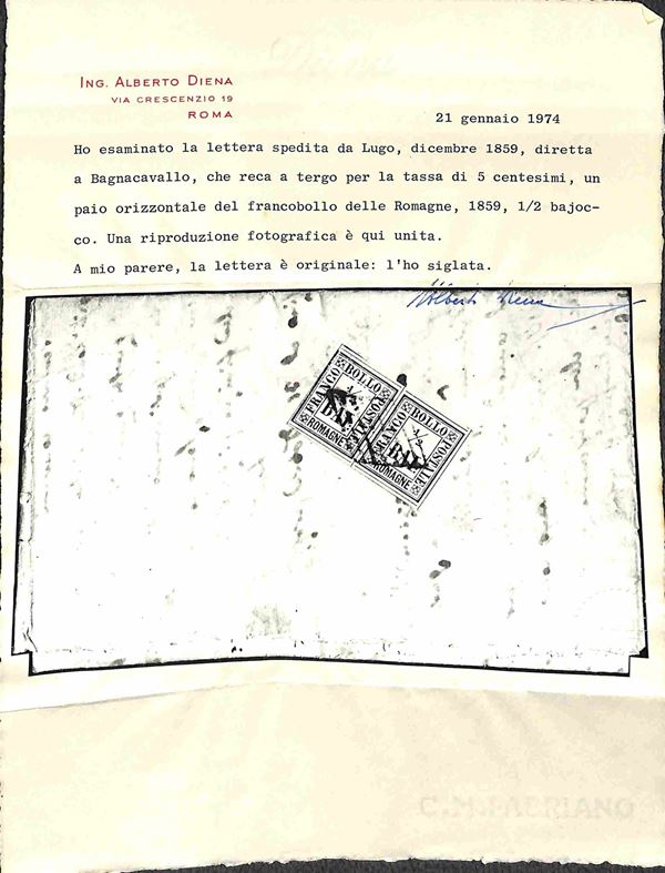 Coppia orizzontale del 1/2 bai (1) al verso di lettera da Lugo per Bagnocavallo del 12.59 - coppia precisa a destra - Gazzi + cert. A. Diena