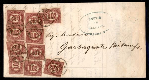 Dieci esemplari del 0,02 cent Servizio (2) su plico da Milano a Garbagnate Milanese del 27.5.75