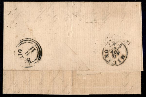 Due 2 bai giallo arancio (3) su lettera da Bologna a Schio del 9.11.59 - un esemplare con ottimi margini e uno stretto a sinistra - A. Diena