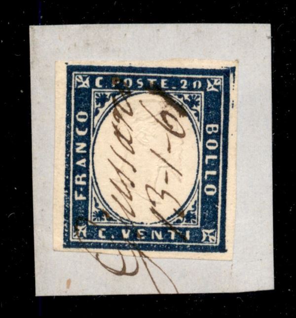 Frammento recante un 20 cent (15C)ben marginato annullato a penna Giussano 13.1.61 (P.ti R2) - annullo provvisorio della Lombardia - Bolaffi