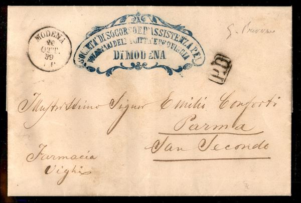 Governo Provvisorio - Lettera non affrancata da MODENA 20 OTTO.59 per Parma con bollo PD in cartella