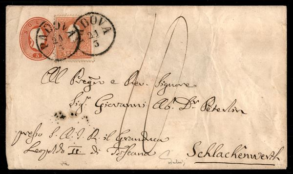 Intero postale da 5 soldi (10) con affrancatura aggiuntiva di uguale valore ma di diversa emissione(25) - raro insieme - Ferchenbauer