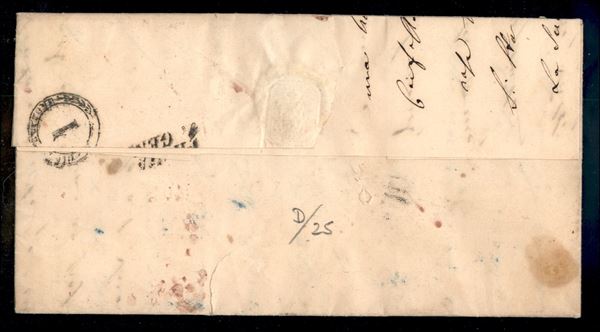 Lettera affrancata con cr.6 azzurro scuro su azzurro (7c) con grandi margini, annullato con bollo rosso muto a rombi di PISA 28 DIC.1853 per Pavia, Sassone punti R1