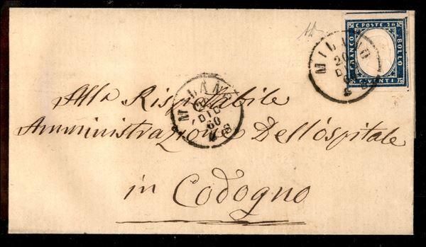 Lettera con 20 cent (15Cc) grandi margini annullato Milano 20.12.60 con ore - ex coll. Provera - AD