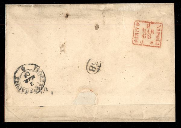 Lettera con b.5 rosa (6) con varietà di stampa sul lato destro e presenza dello spazio tipografico in alto, da TERRACINA 2 MAR.66 per Napoli, inconsueta varietà