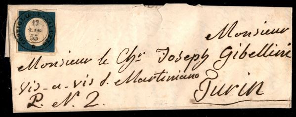 Lettera con c.20 azzurro (8) da COSTIGLIOLE SALUZZO 17 LUG.55 (p.ti 8) per Torino, ottimi margini e annullo nitido