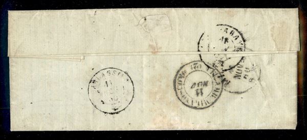 Lettera con Sardegna c.20 azzurro (15C) con annullo provvisorio a penna "Distribuzione di Misinto" e al verso il bollo di Galalrate del 11 nov.1860 per Besnate, rarissimo e firme per esteso di A.Diena, Giulio Bolaffi