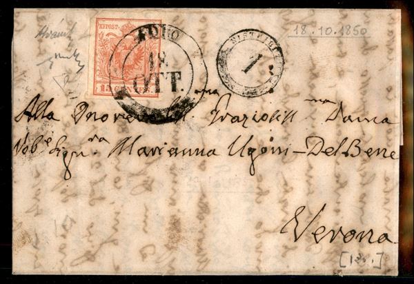 Lettera da Adro (2CO gr. - P.ti 10) affrancata con 15 cent (3a) molto ben marginato - ex coll. Provera - Chiavarello + Alianello + ED