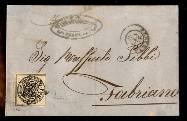 Lettera da PERUGIA 22 SET.58 per Fabriano affrancata con b.4 giallo chiaro (5Aa) annullato a penna, firma Sottoriva