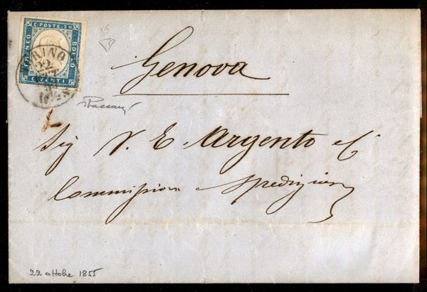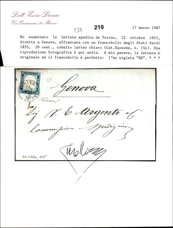 Lettera da Torino 22.10.55 recante 20 cent (15c) ottimamente marginato - ex coll. Provera - cert. ED
