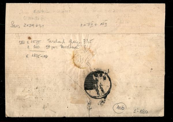 Lettera in tariffa da 16 soldi affrancata con due esemplari s.3 nero + s.10 bruno (29+31) da VENEZIA 12/6 per Modena, non comune