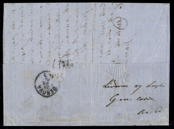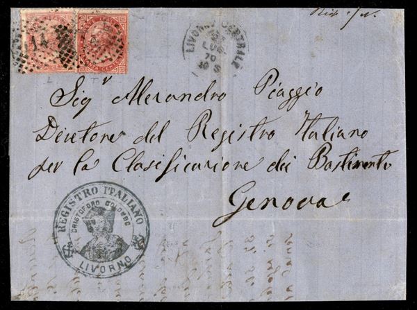 Lettera per Genova affrancata con c.40 tiratura di Londra + c.40 tiratura di Torino da LIVORNO CENTRALE 27 LUG.70, rara combinazione