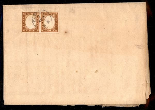 Lettera sottofascia con coppia c.10 arancio brunastro (14Dg) da CASALE 7 AGO.63, un esemplare con margine lievemente intaccato a sinistra