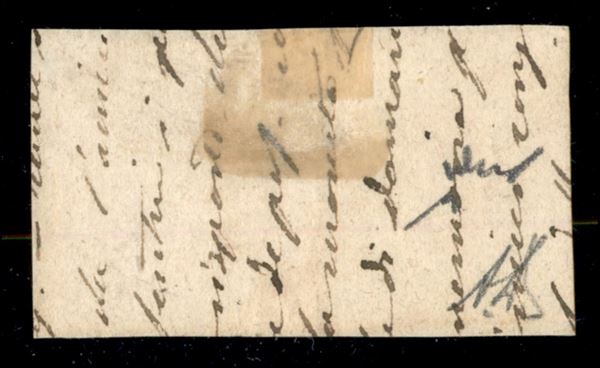 Piccolo frammento con Napoli gr.2 rosa chiaro + Province gr.2 azzurro, annullo a svolazzo tipo 1, valori gemelli