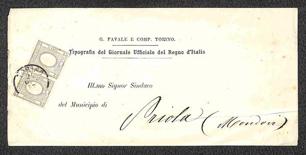 Tre missive in tariffa per stampati da due centesimi, una con coppia c.1 grigio, una con c.2 grigio isolato e altra con c.2 bistro (Sardegna 19, 20 e Italia 10) tutte da TORINO per varie località