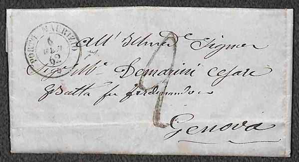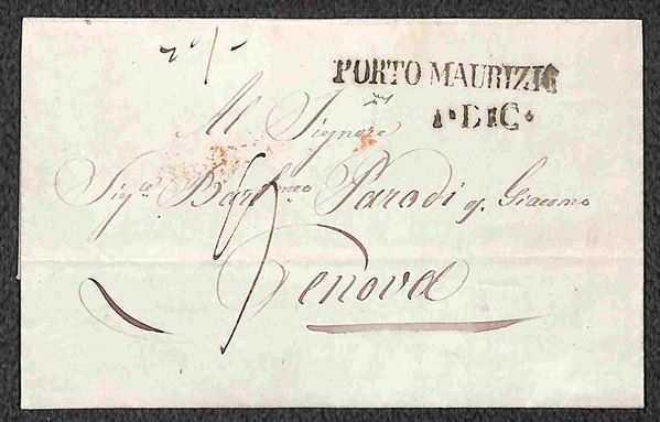 1806/1862 - Cinque lettere con bollature differenti in rosso ed in nero di Porto Maurizio - una con indicazione manoscritta - la maggior parte firmate Chiavarello